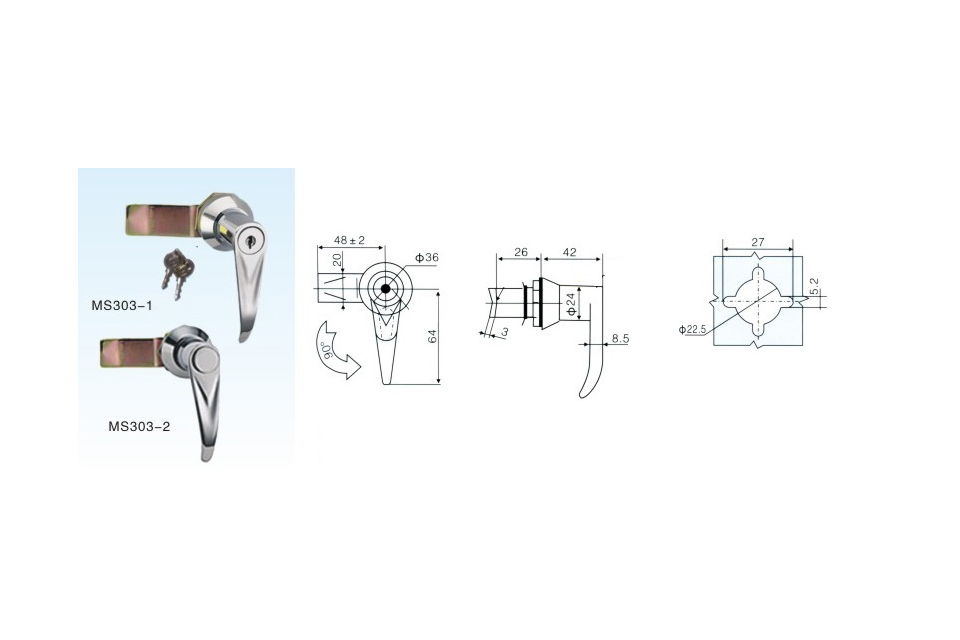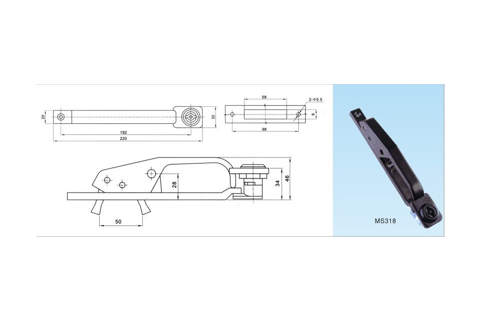 Металлическая защёлка с пружинным механизмом. Предназначена для фиксации крышек и панелей, крепление на 4 винта Ø4.5.